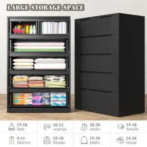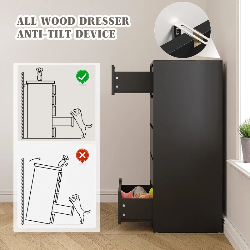 Modern Wooden Black Tall Dressers for Bedroom and Closet