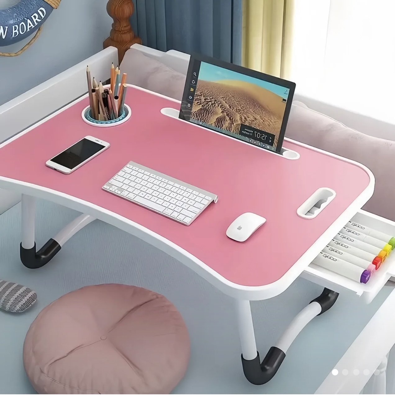 Portable Laptop Table with Cup Holder & Storage Drawer